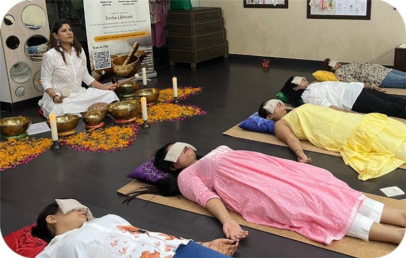 - Immersive sound bath with crystal bowls, Tibetan bowls, and chimes